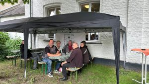 Spargelessen 2025 Am 1. Juni 2025 fand das zweite Spargelessen der Werstener Jonges statt. Nach dem grossen Anklang im Jahr 2024 haben wir dieses Jahr das Spargelessen glatt noch einmal wiederholt. Das Wetter war uns wohl gesonnen und auch draußen in unserem "Vorgarten" konnte man es sich gut gehen lassen. Das Spargel Team draussen Das Spargel Team drinnen